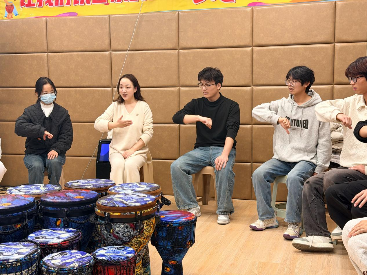 11月17日下午14:30,由心理健康教育中心张玲老师举办的“校园压力爆破计划:一场会打鼓就能玩的解压派对”在郑州校区B203如期举行。没有复杂的规则,没有沉重的说教,在轻快的氛围中,来自不同学校院系的20多位同学围圈而坐,开启了一场“非正式却极认真”的心灵对话,这不仅是一次音乐体验,更是一场关于情绪释放、自我觉察与人际连接的心灵之旅。