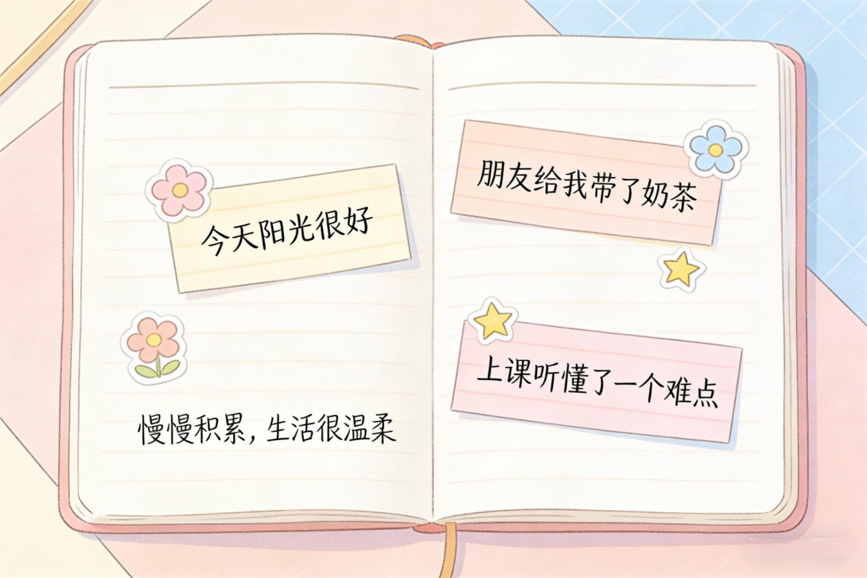 记录“小美好”:每天记一件让自己开心的小事,比如“今天阳光很好”“朋友给我带了奶茶”“上课听懂了一个难点”,慢慢积累,就会发现生活很温柔;